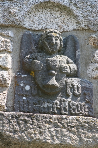 Langle. Pierre sculptée en kersantite (ange présentant un calice)Immatriculation