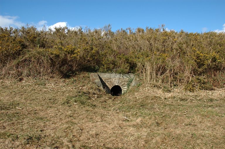 Vue de la batterie extérieure de 100 mm du Mengant : égout central en maçonnerieImmatriculation