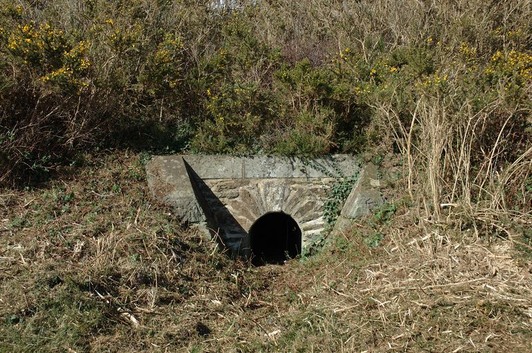 Vue de la batterie extérieure de 100 mm du Mengant : égout central en maçonnerieImmatriculation