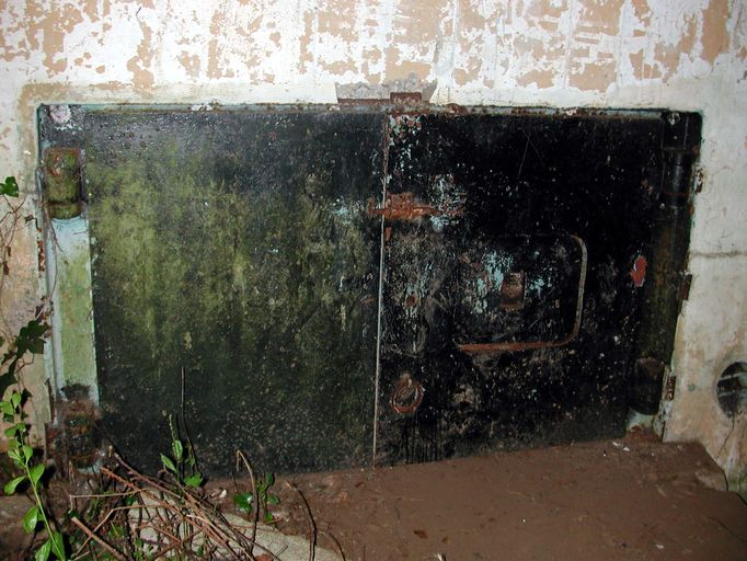 Vue de la casemate de type 505 du Portzic : porte blindée à deux battants de la chambre de tir de type 447P01Immatriculation