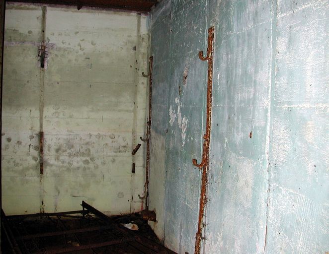 Vue de la casemate de type 505 du Portzic : intérieur, chambre de troupe, supports réglementaires de couchetteImmatriculation