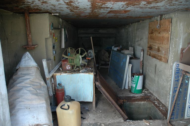 Vue de l'ensemble fortifié de la pointe du Renard : abri de type 601 pour canon antichars avec toit blindé, accès à la soute à munitionsImmatriculation