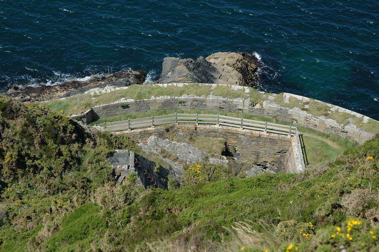 Vue de la batterie basse de Cornouaille depuis le poste de commandement de secteur : emplacement de la batterie de rupture aménagée en 1888Immatriculation
