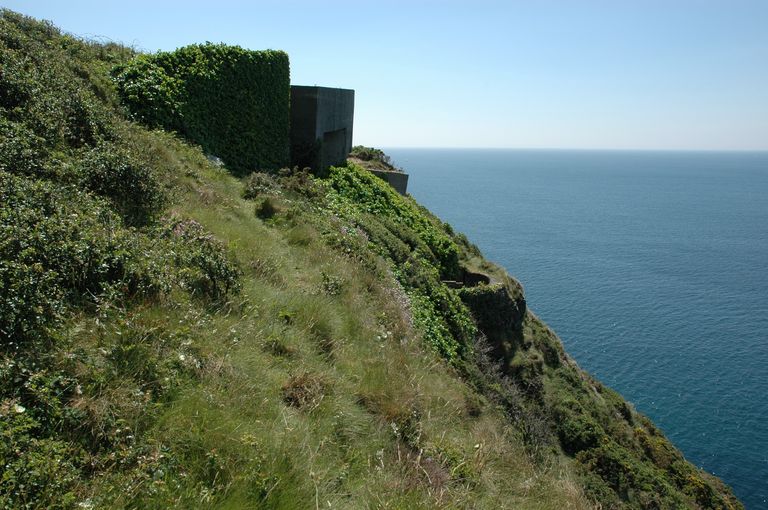 Vue de l'abri bétonné allemand et du poste de commande des projecteurs français de la pointe de CornouailleImmatriculation