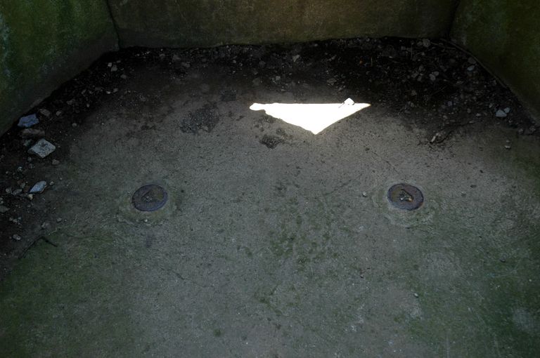 Vue du poste d'observation bétonné à deux niveaux de la pointe de Cornouaille : emplacements de calage du pied du télémètreImmatriculation