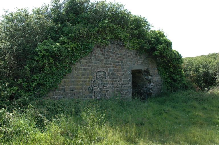 Vue de la batterie de gauche des Capucins : traverse en maçonnerie en partie ruinée par les bombardementsImmatriculation