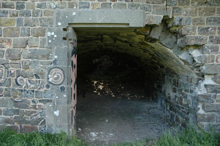 Vue de la batterie de gauche des Capucins : traverse en maçonnerie en partie ruinée par les bombardementsImmatriculation