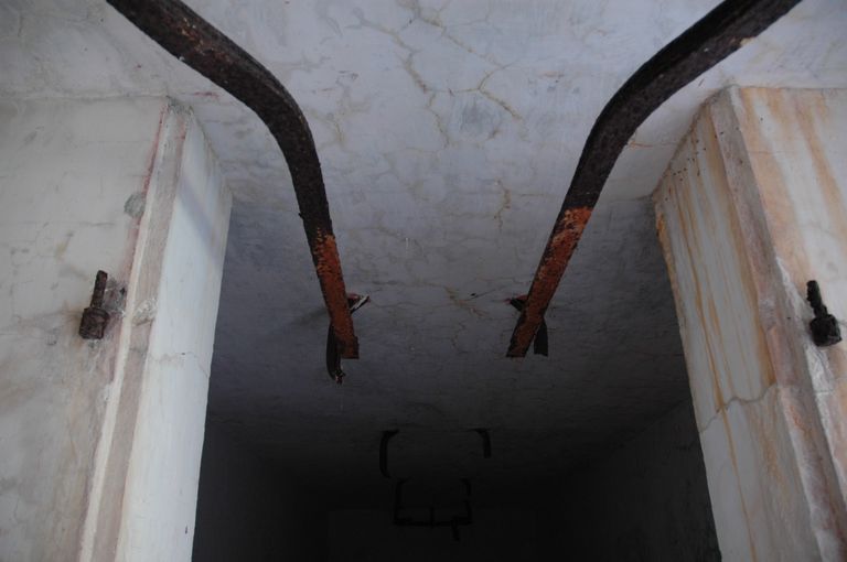 Roscanvel, pointe de Kerviniou : batterie de 4 canons de 24 cm de Kerviniou, intérieur du magasin à munitions en béton armé sous le massif de la traverse d'extrémité gaucheImmatriculation