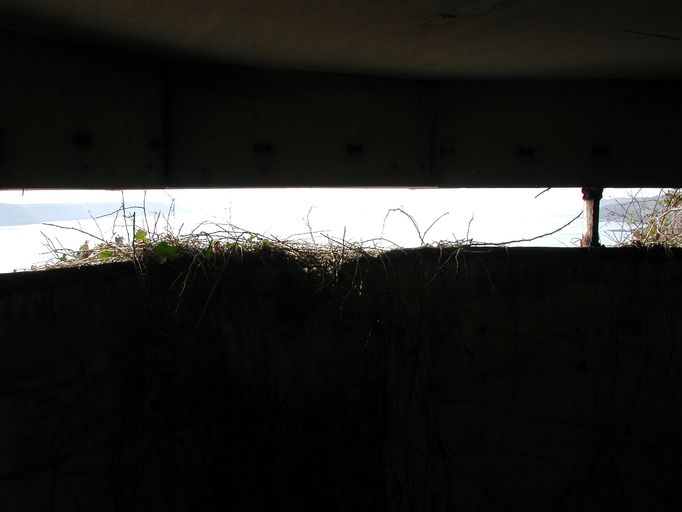Vue intérieure du poste d'observation bétonnée situé à proximité de la batterie de 32 cmImmatriculation