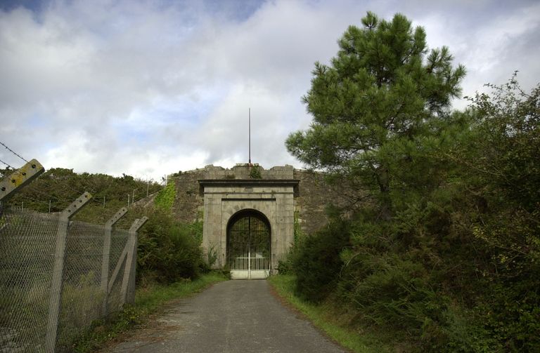 Vue du fort de Lanvéoc : porte monumentale datée de 1878Immatriculation