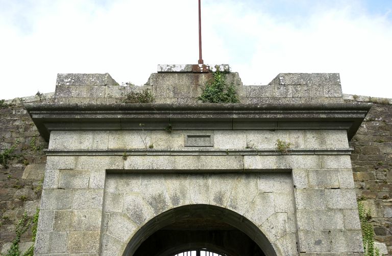 Vue du fort de Lanvéoc : détail de la porte monumentale datée de 1878Immatriculation