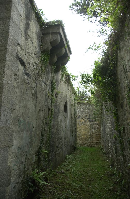 Vue du corps de garde crénélé n° 2 modifié de la pointe de Morgat ou Kador : façade sud protégée par un masque artificiel réalisé avec le déblai provenant de la fouille maintenue par une contrescarpeImmatriculation