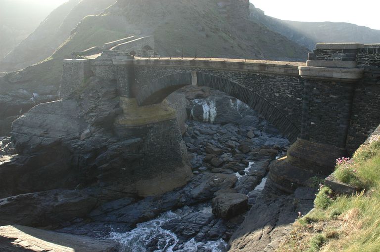 Vue du pont à une seule arche en appareil de schiste renforcé par une maçonnerie en grès de l'îlot des Capucins. Il porte au sud la date de 1861 et les lettres G M pour Génie MaritimeImmatriculation