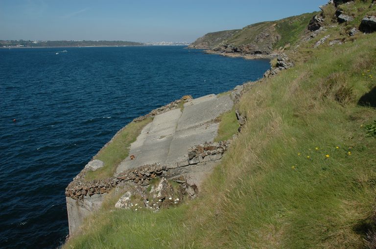 Vue du poste lance-torpilles de la pointe de Cornouaille. Situé au ras de l'eau, à l'est de la batterie de BeaufortImmatriculation