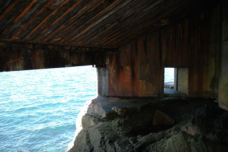 Vue du poste lance-torpilles de la pointe de Cornouaille. Situé au ras de l'eau, à l'est de la batterie de BeaufortImmatriculation