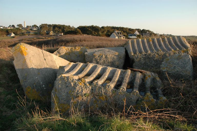Vue de l'ensemble fortifié allemand de Porz Tévigné : vestiges d'un abri type tôle-métroImmatriculation