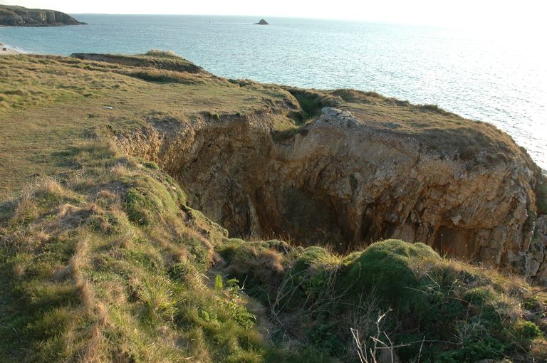 Vue de l'ensemble fortifié allemand de Porz Tévigné : vestiges d'une tranchéeImmatriculation