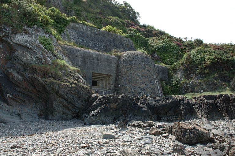 Batterie de rupture casematée (2 canons M de 32 cm modèle 1870-1884 sur affûts M modèle 1888) puis casemates (2 canons antichars de 5cm Kwk) (Cr 42), au ras de l'eau, Pointe des Espagnols (Roscanvel),