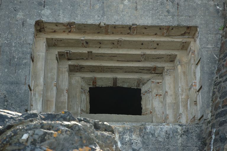 Vue de la batterie de rupture de la pointe des Espagnols : embrasure allemande en gradin (à comparer avec celle de la batterie de rupture de Pourjoint)Immatriculation