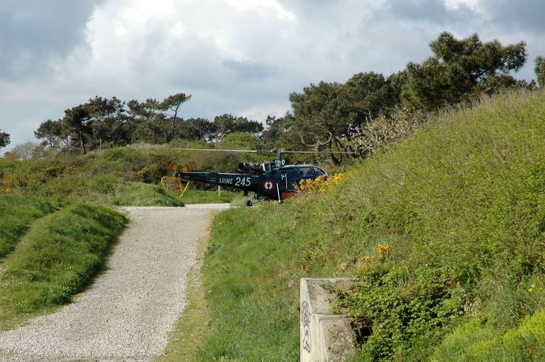 Vue de la pointe des Espagnols (hélicoptère léger polyvalent français de type Alouette III de la Marine Nationale en exercice, base de Lanvéoc-Poulmic)Immatriculation