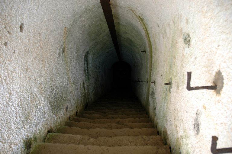Vue de la pointe des Espagnols : escalier du magasin à poudre sous rocImmatriculation