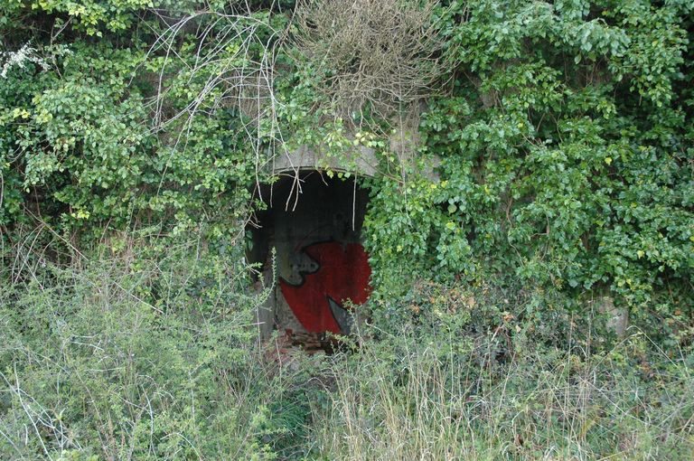 Vue de la pointe des Espagnols : soute à munitions creusée en abri-caverne dans le pied de la falaiseImmatriculation