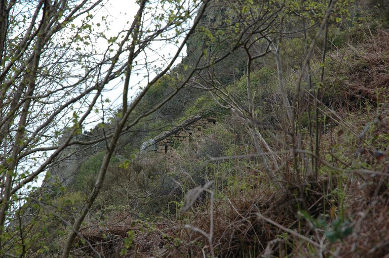 Vue de la pointe des Espagnols : enceinte du fort (milieu 18e siècle) envahie par la végétation (ouvrage à corne). Nombreux créneaux de fusilladeImmatriculation