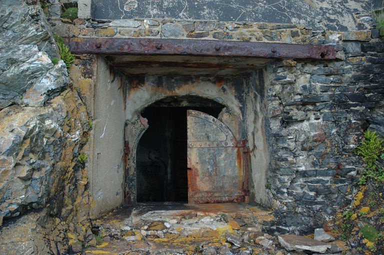 Roscanvel, pointe Robert : abri du groupe de deux projecteurs (60 cm et 90 cm de diamètre), embrasure, volet blindéImmatriculation