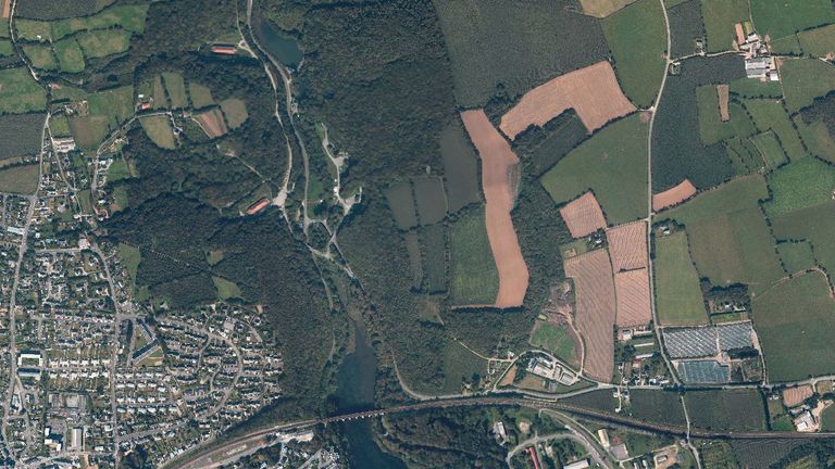 Guipavas : vue aérienne verticale de la pyrotechnie Saint-Nicolas en 2004 (Brest Métropole Océane)Immatriculation