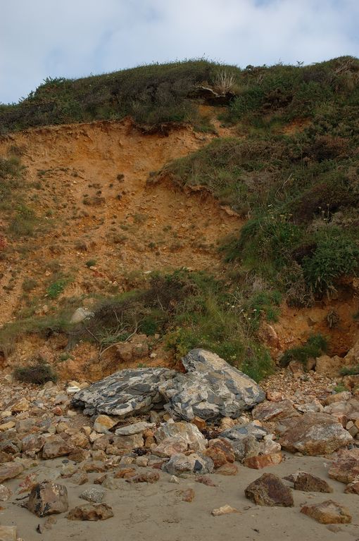 Vue des vestiges de la batterie nord de la Plage de Trez-Rouz. Maçonnerie en blocs de schiste et granite assemblés au mortierImmatriculation