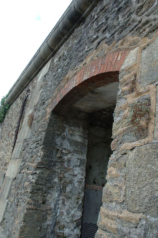 Vue des latrines collectives (contre-plongée) : porte gauche aménagée ultérieure (arc segmentaire en brique)Immatriculation
