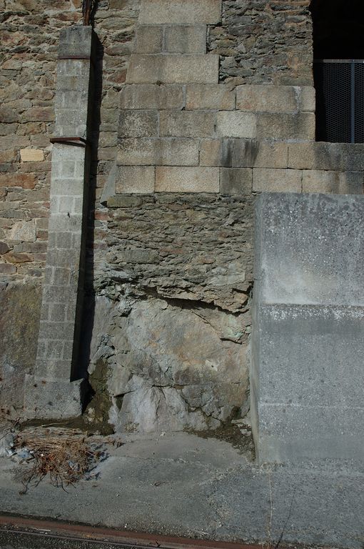 Vue de détail des fondations en pierre de taille de granite sur le socle rocheux (angle sud)Immatriculation