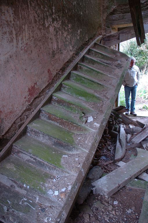 Vue de l'île Trébéron en 2007 : bâtiment (B), escalier tournant en charpente (vestiges)Immatriculation