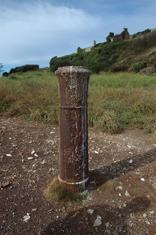Crozon : vue de l'île des Morts en 2007, canon-bollard permettant de capeler l'oeil des amarresImmatriculation