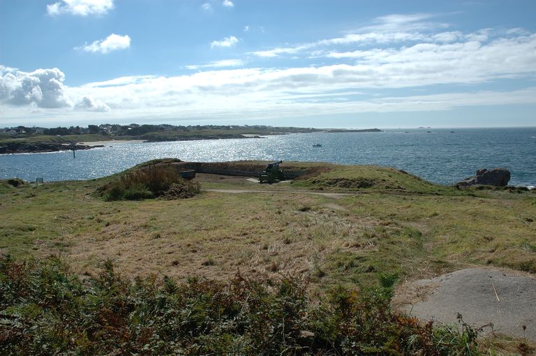 Vue de l'ensemble fortifié de Lanildut : la batterie de côte depuis le corps de gardeImmatriculation