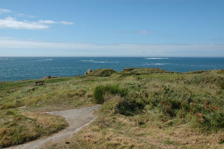 Vue de l'ensemble fortifié de Lanildut : la deuxième batterie de côte depuis le corps de gardeImmatriculation
