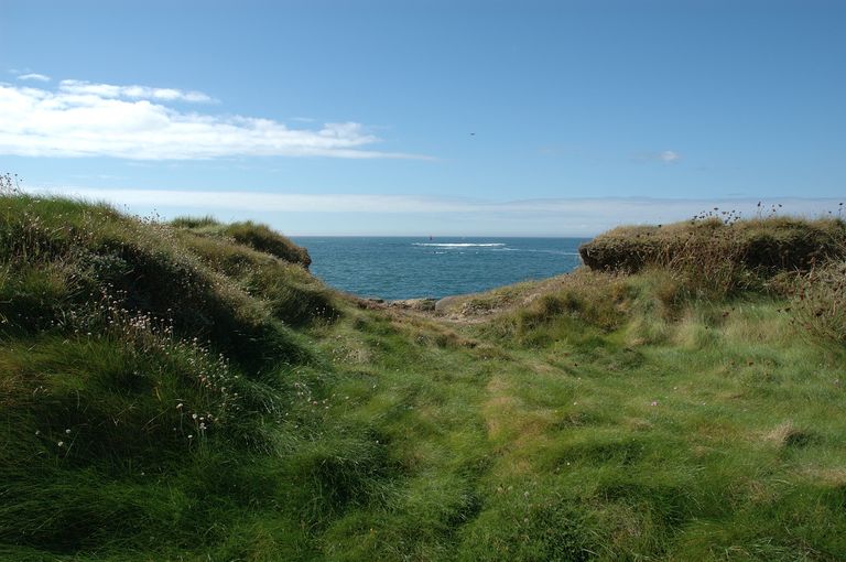 Vue de l'ensemble fortifié de Lanildut : deuxième batterie de côte non restaurée victime d'une importante érosionImmatriculation