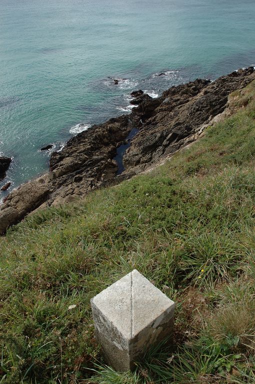 Vue de la batterie de l'est dite batterie de gauche conçue pour 4 canons de 24 cm modèle 1870 : borne cadastrale délimitant l'emprise militaireImmatriculation