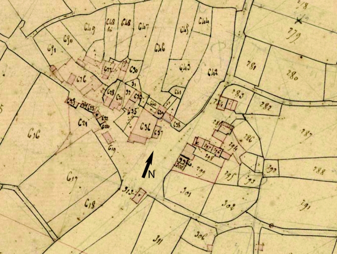 Extrait du cadastre de 1835, assemblage des sections E 1 et F (A. D. Finistère, 3 P 124)Immatriculation