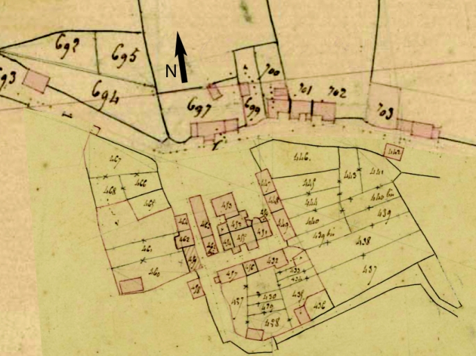 Extrait du cadastre de 1835, assemblage des sections F et G 2 (A. D. Finistère, 3 P 124)Immatriculation