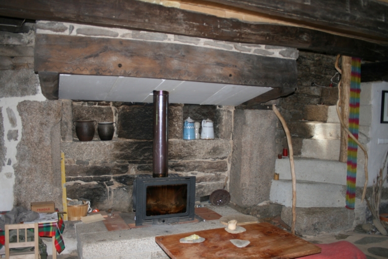 Intérieur du logis sud, vue de la cheminée et de l'escalier en visImmatriculation