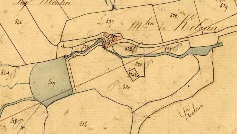 Moulin de Kerelcun. Extrait du cadastre de 1835, section C (A.D. Finistère, 3 P 124)Immatriculation