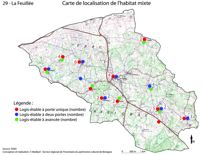 Maisons, fermes et hameaux sur la commune de La Feuillée,