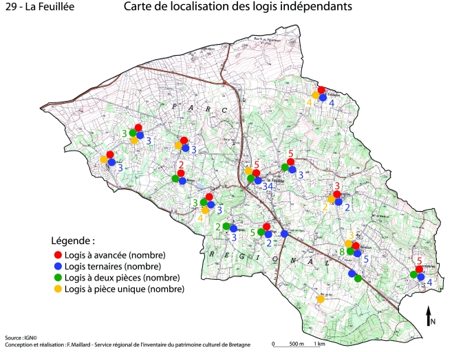 Maisons, fermes et hameaux sur la commune de La Feuillée,