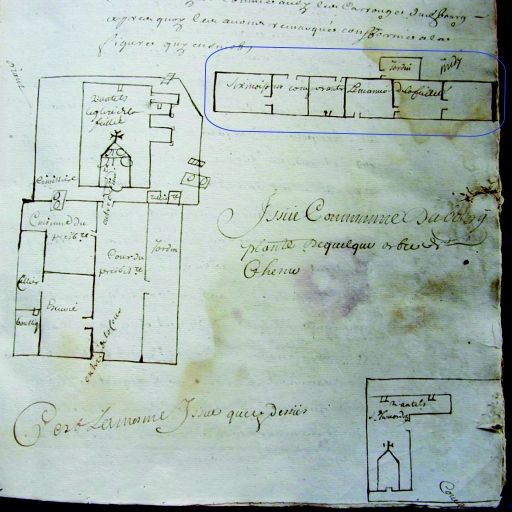Dessin schématique à la plume, arpentage de la commanderie de La Feuillée, 1701 (A. D. Finistère, 41 H 6)Immatriculation