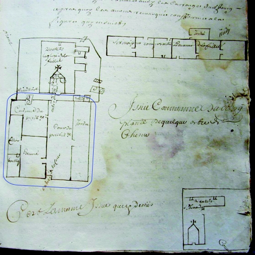 Dessin schématique à la plume, arpentage de la commanderie de La Feuillée, 1701 (A. D. Finistère, 41 H 6)Immatriculation