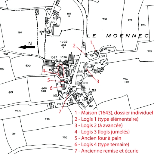 Localisation des éléments repérés (fond : cadastre de 1999)Immatriculation