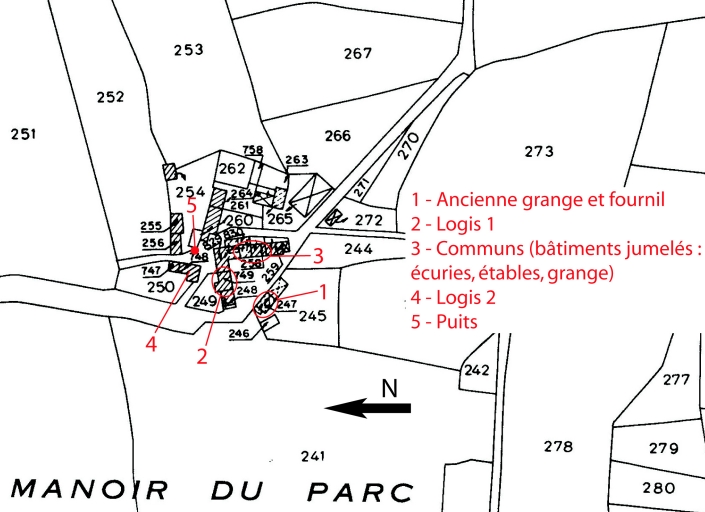 Localisation des éléments repérés (fond : cadastre de 1999)Immatriculation