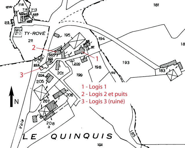 Localisation des éléments repérés (fond : cadastre de 1999)Immatriculation