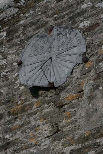 Logis 1, pignon sud, cadran solaire (état en 2007)Immatriculation